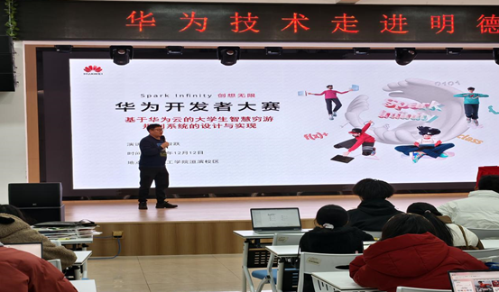 betway必威中国教师、华为开发者布道师吴淑跃在2024年12月5日及12月12日分别走进材料公司及洹滨校区,带来一场华为技术与各个专业结合的精彩演讲。