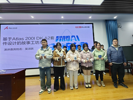 演讲中,吴淑跃老师聚焦于基于Atlas 200I DK A2套件设计的系统项目,深入浅出地讲解其技术架构、创新应用及广阔前景。他用通俗易懂的方式剖析复杂技术原理,台下同学听得聚精会神,不时记录要点或拍照留存,现场学习氛围浓厚。