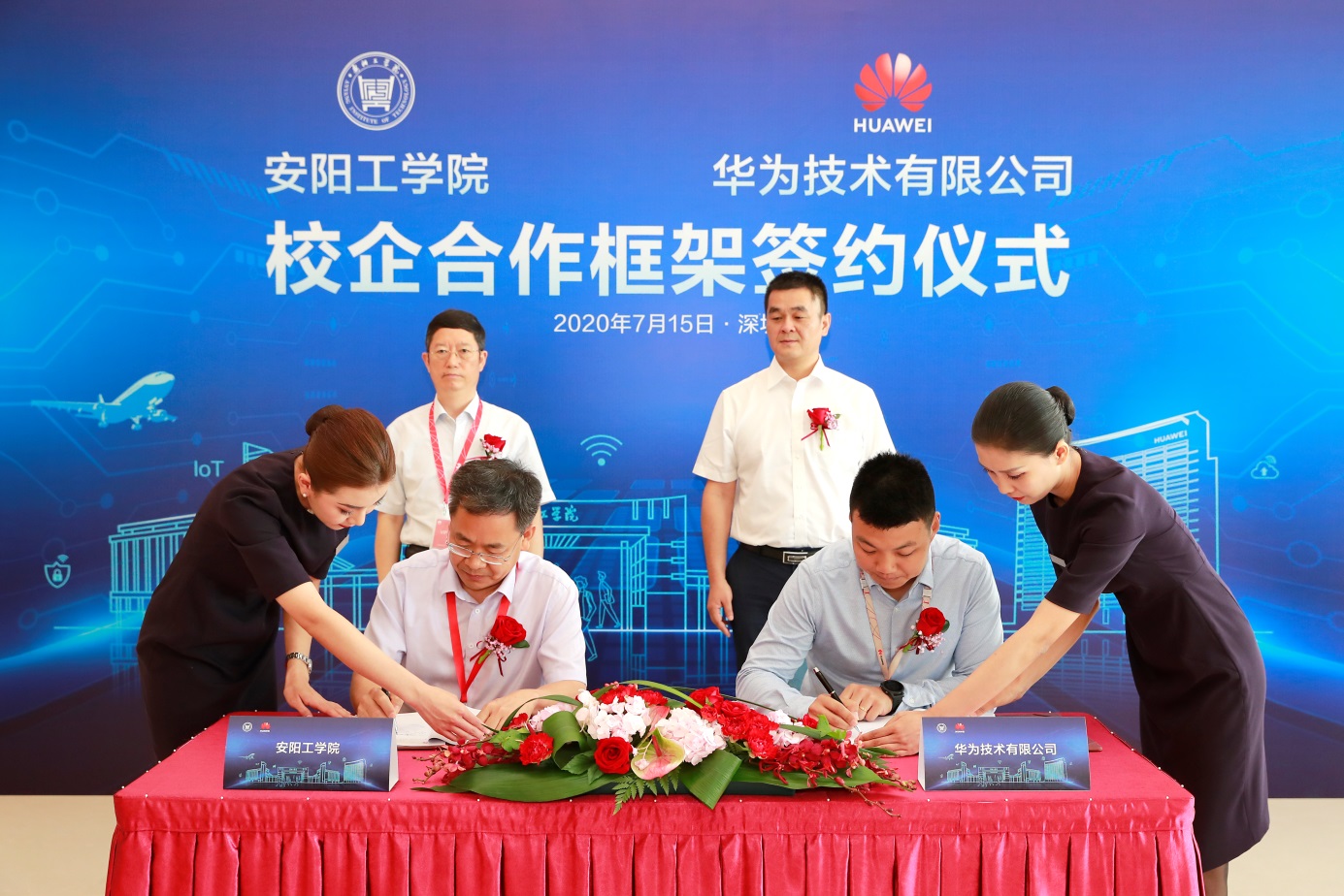 7月15日,董事长景国勋、副董事长郭秋平带领校办、教务处、飞行公司、betway必威中国、现代教育技术中心等相关部门负责人到深圳华为公司总部和东莞华为研发中心考察并与华为公司签署了校企合作框架协议。
