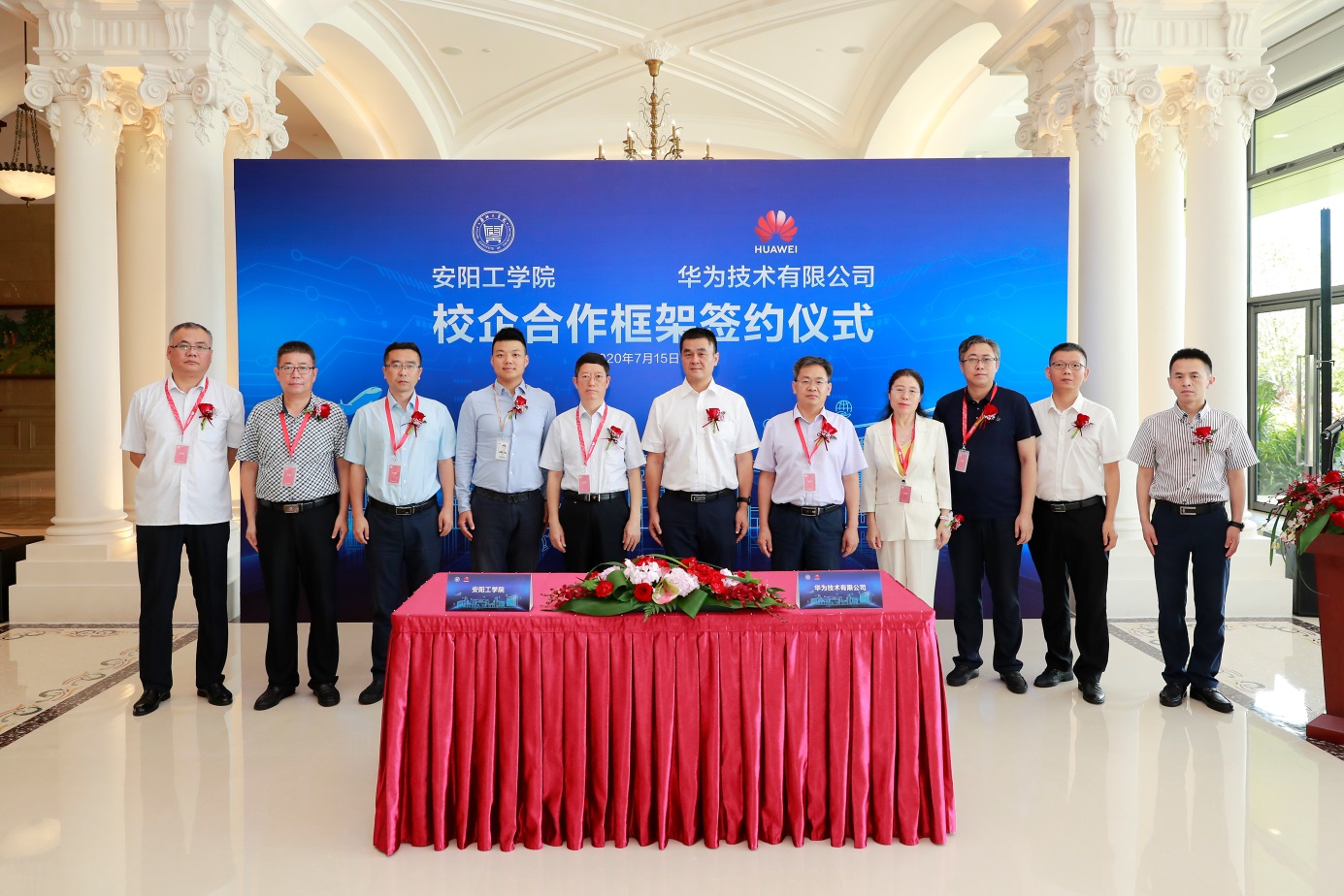 在华为公司总部,景国勋、郭秋平一行与华为公司中国区政企业务教育业务部总经理曾伟经、华为公司河南政企业务副总经理李博、华为公司政企业务安阳濮阳总经理刘万田等人举行座谈。双方围绕联合培养人才、公司智慧校园建设进行了深入探讨和交流,商定了在联合培养人才和公司信息化建设等方面的合作范围和合作形式。