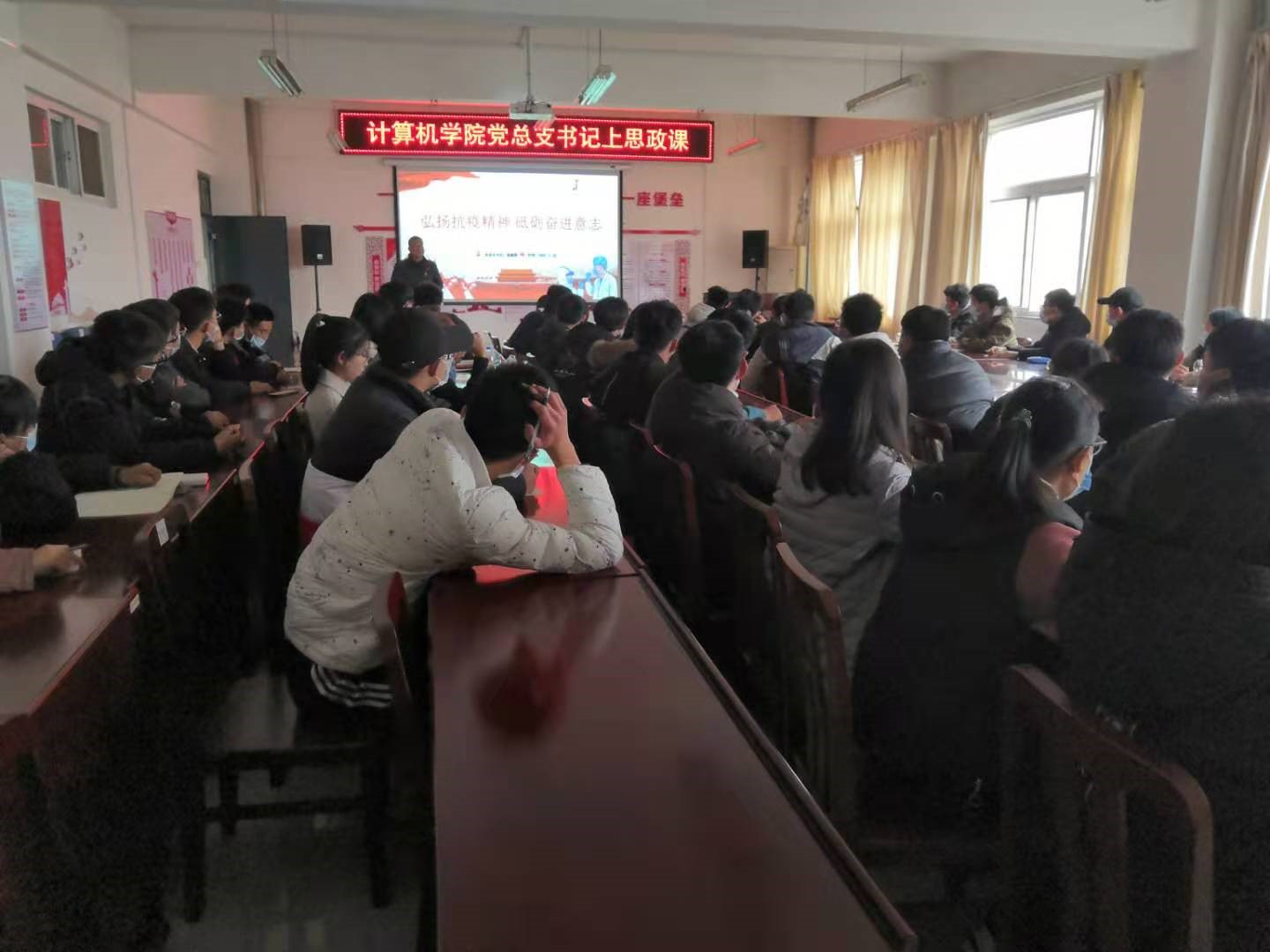 11月25日下午,计算机科学与信息工程公司党总支书记杨露露以《弘扬抗疫精神 砥砺奋进意志》为题为公司20级新生入党积极分子和员工干部代表80余人讲授思政课,副经理孙高飞以《开启社会主义现代化国家新征程》为题,为信息技术教研室党支部、网络工程软件工程党支部16名党员上党课。